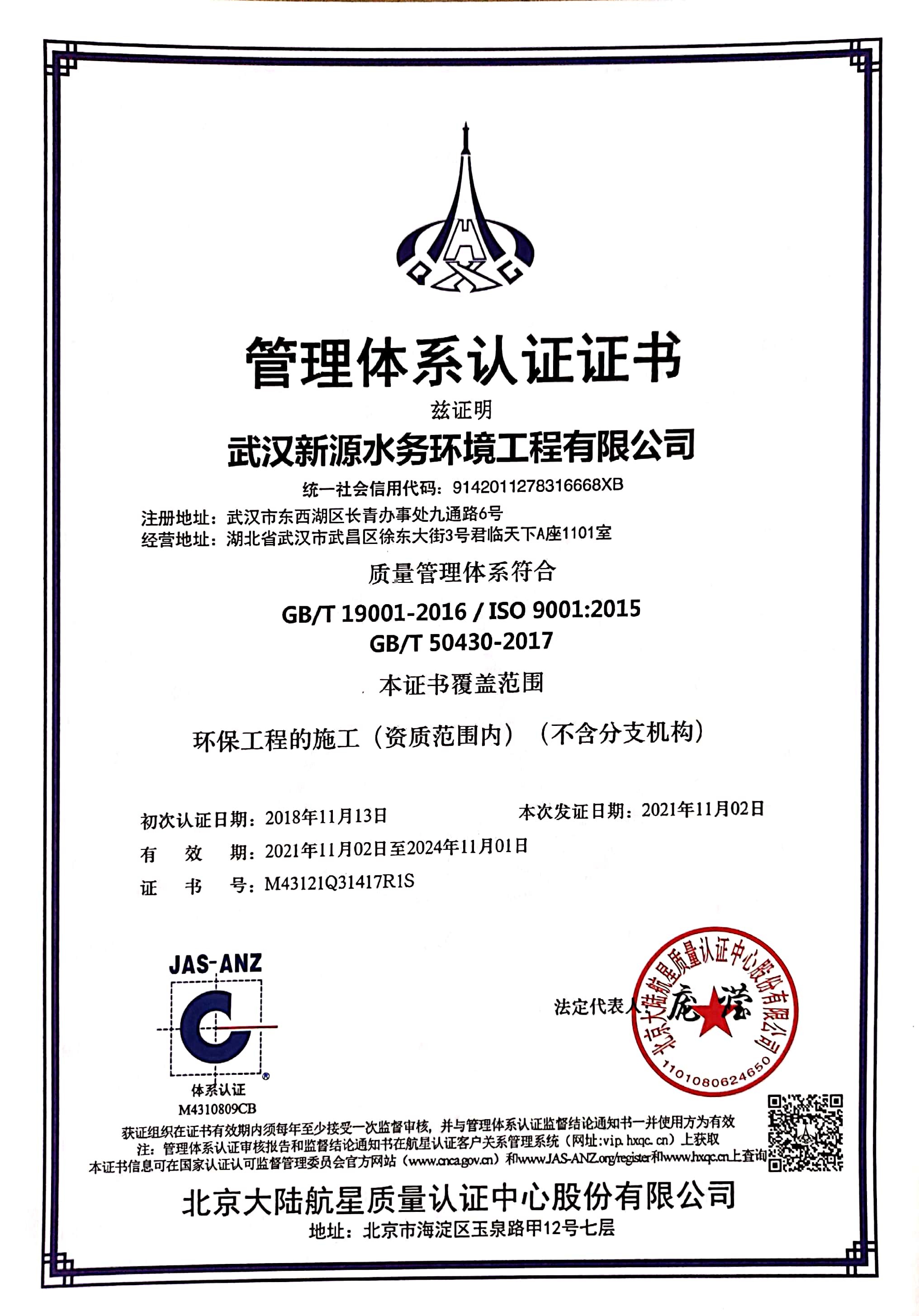 武漢新源水務(wù)環(huán)境工程有限公司